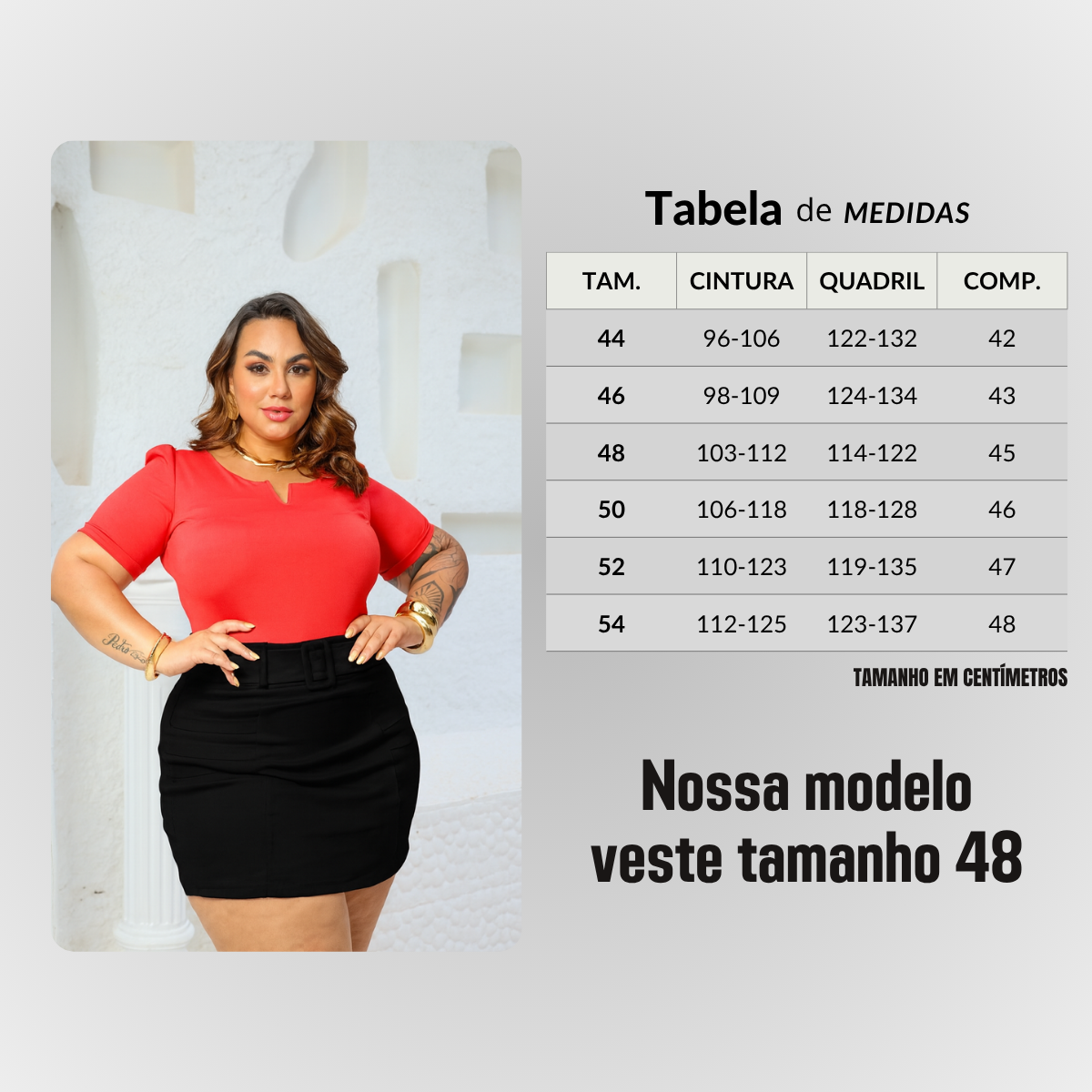 - Modelagem: Short saia, plus size