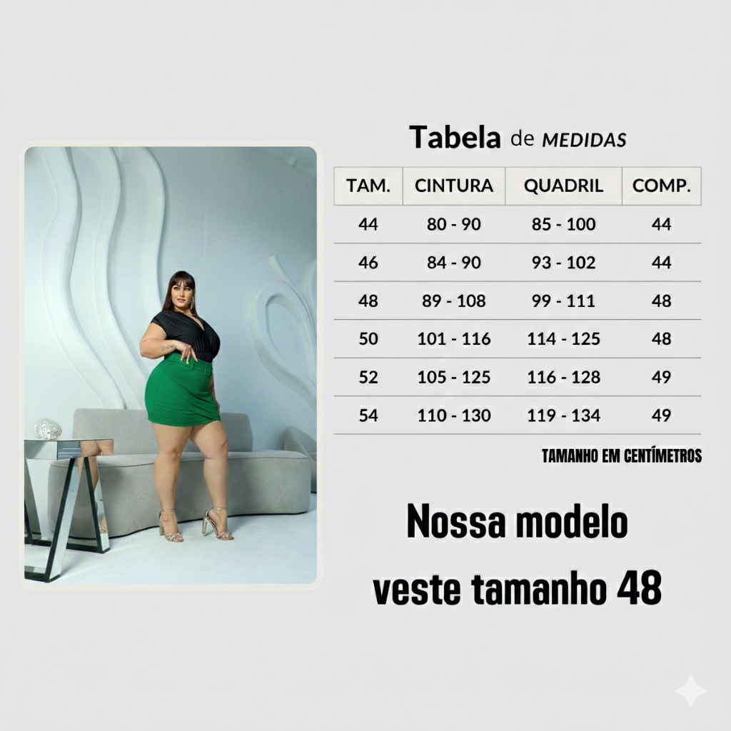- > SAIA FEMININA PLUS SIZE FIVELA FIXA TECIDO BENGALINE ELASTANO RECORTES CAMADAS